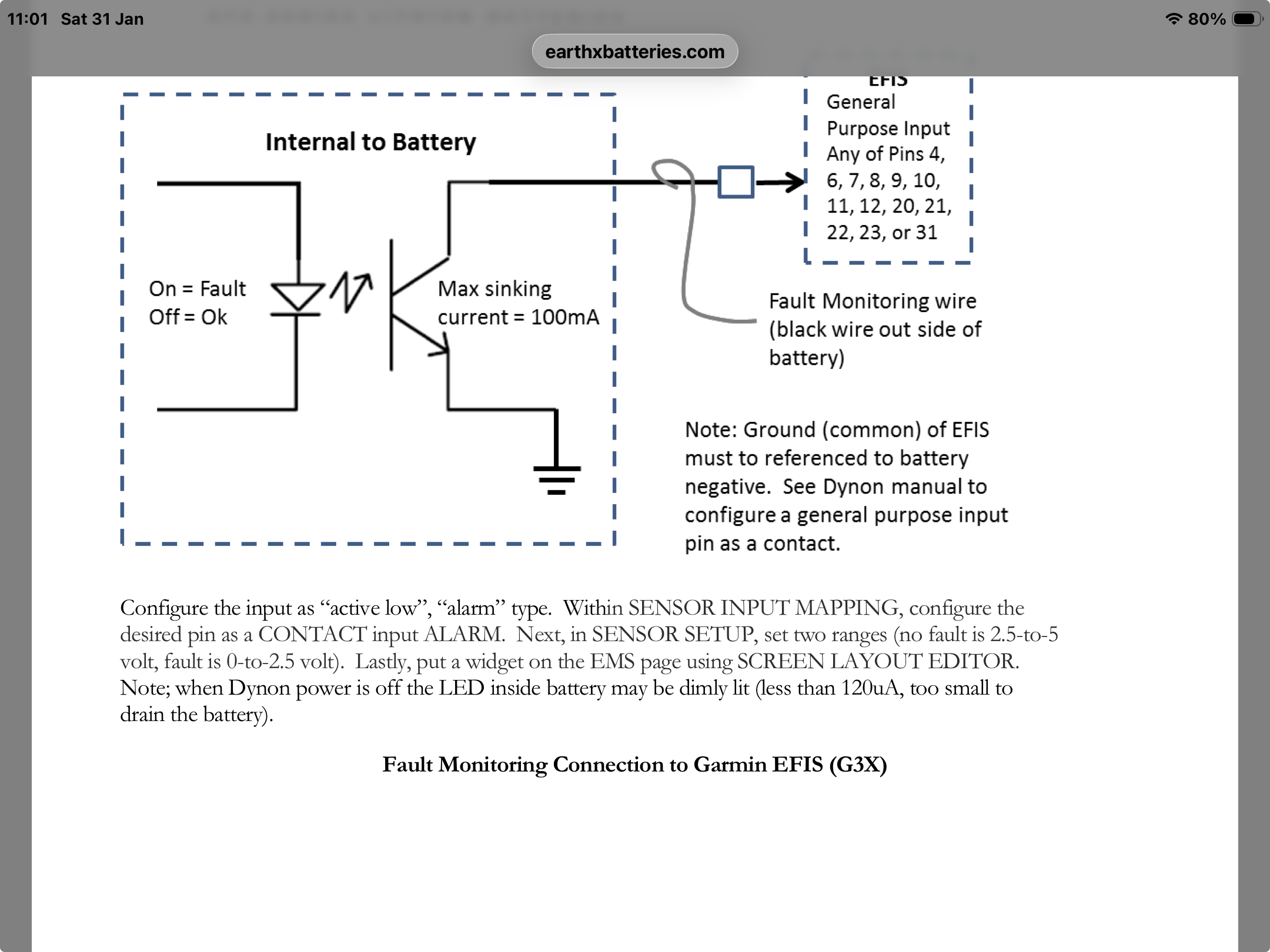 When I set up the EMS with my HDX , I followed the alarm settings to monitor the Earthx 680 wellbeing. I notice now in the latest install manual the recommendations have changed. See below . The first recommendation was to set the fault setting at 0-1 volt , but the latest manual setting is to set the fault level at 0-2.5 V. So far , I have left my original set up , but I think I will try the new manual instructions.