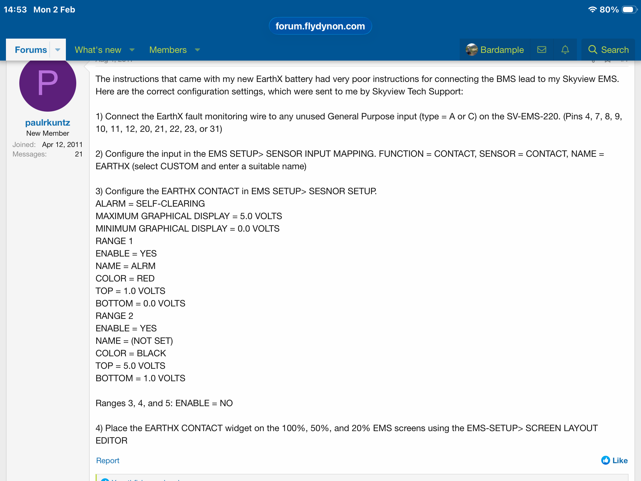 The Dynon manual has said that for contact mapping for quite some time now, as far back as at least 2022, maybe even further. I don't have an old EarthX manual to compare. It's page 7-100 in the current Dynon manual. 1 volt would seem to be cutting it a bit close, but maybe the BMS in the older EarthX batteries needed that setting.
