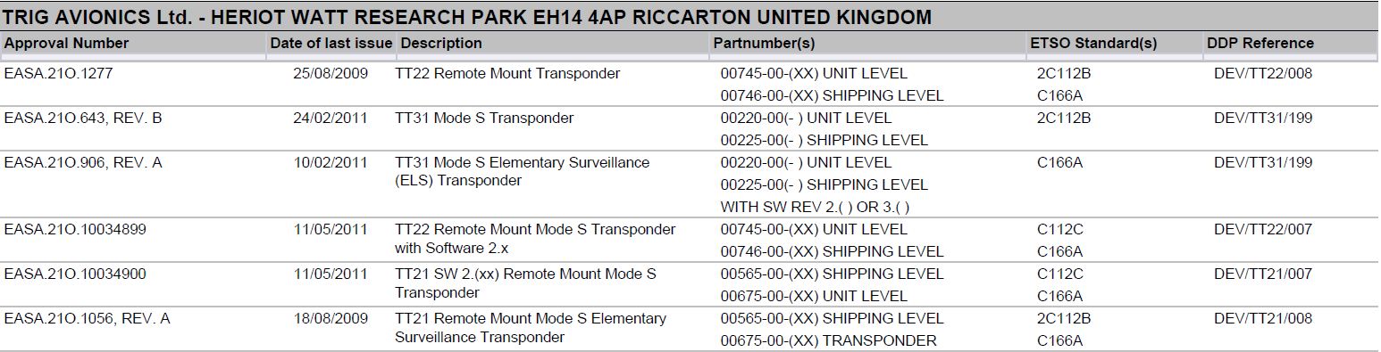 Would appreciate any feedback and if ETSO is not yet here is there a plan to have it approved? (Trig see attachement has them)